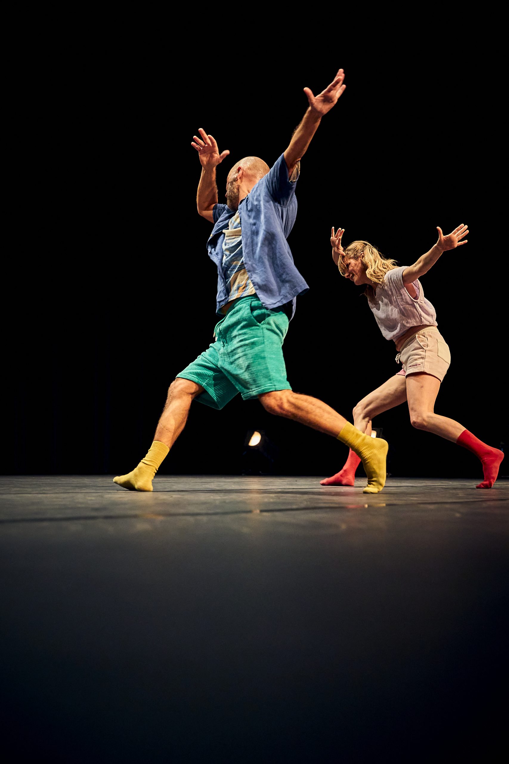 Il mêle les genres de danse et puise dans les gestes du quotidien. La spontanéité et la pulsion de vie dominent. Et le duo nous prend à revers, se jouant de la mélodie, du tempo et même de la danse, rien que pour le plaisir !