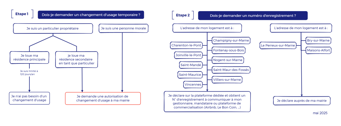 Numéro d'enregistrement, changement d'usage, classement. Retrouvez ici toutes les informations et actualités pour louer un meublé de tourisme, votre résidence principale ou votre résidence secondaire dans l'une des 13 villes de Paris Est Marne et Bois.